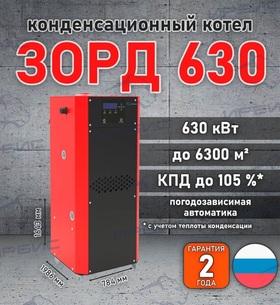 Газовый котел «Зорд 630» с теплообменником, изготовленным из специального алюминиевого сплава, предназначен для водяного отопления жилых и служебных помещений с принудительной циркуляцией воды в автоматическом режиме. Котел относится к классу конденсационных и является генератором тепла в системах водяного отопления и ГВС.