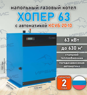 Напольный газовый котел «Хопер 63» с автоматикой КСУБ 20.10 предназначен для отопления жилых, промышленных, складских и прочих помещений площадью до 630 м2. Программируемая погодозависимая автоматика КСУБ позволяет существенно экономить на топливе, так как подача топлива регулируется автоматически в зависимости от изменения температуры наружного воздуха. Газовый котел «Хопер 63» с КСУБ 20.10 не требует постоянного присутствия обслуживающего персонала и может управляться дистанционно с пульта управления.
